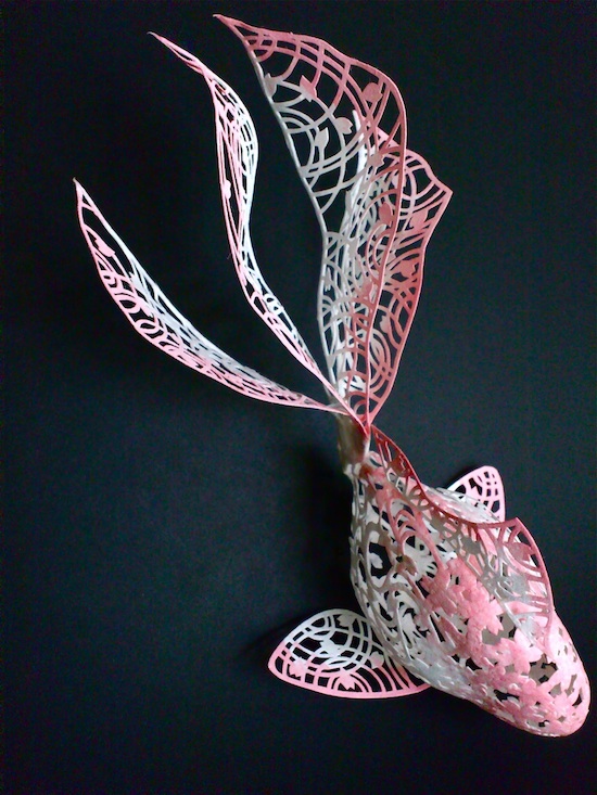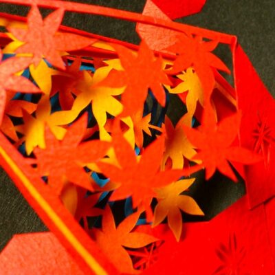 当初は平面の切り絵を作成していたが、 『立体切り絵』というアイデアを思いつく。