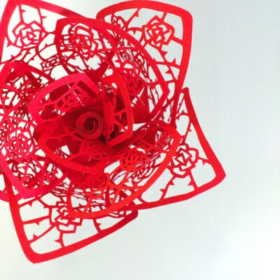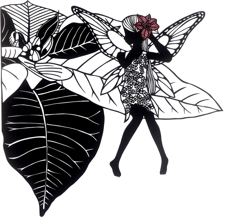 独学で切り絵を学び、リアルな草花からファンタジーな作品まで独自な世界観で切り絵を作り上げる。